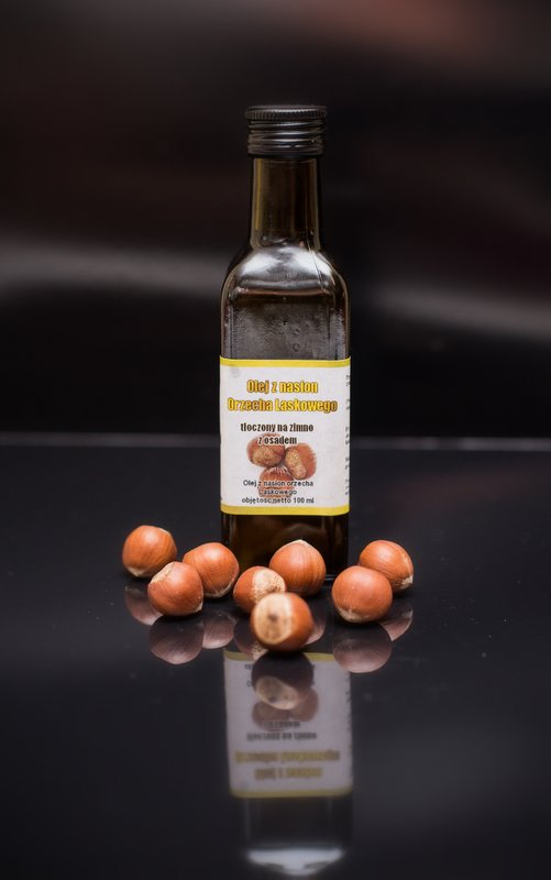Prezentujemy państwu nierafinowany olej uzyskiwany w wyniku tłoczenia na zimno nasion orzecha laskowego. Olej z orzechów laskowych jest delikatny, lekko żółty, posiada dosyć charakterystyczny miły zapach. Olej ma wysoką zawartość nienasyconych kwasów tłuszczowych (NNKT), a w szczególności wysoką zawartośc kwasu oleinowego. Dodatkowo olej z orzechów lakowych może zawierać tokofenole, fitosterole i fosolipidy.